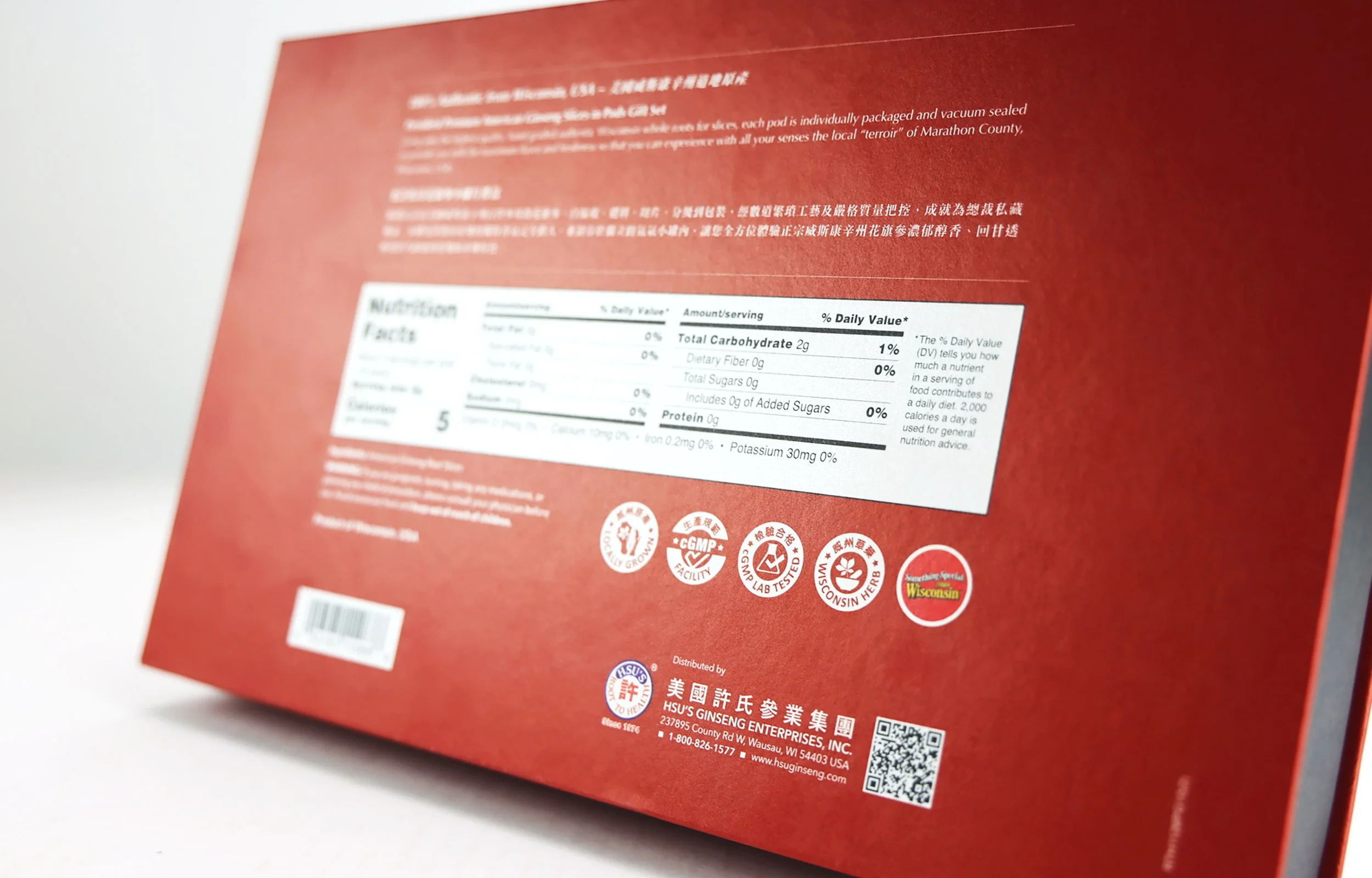 Created a premium gift set for American Ginseng Slices, utilizing specialized red and gold print finishes to