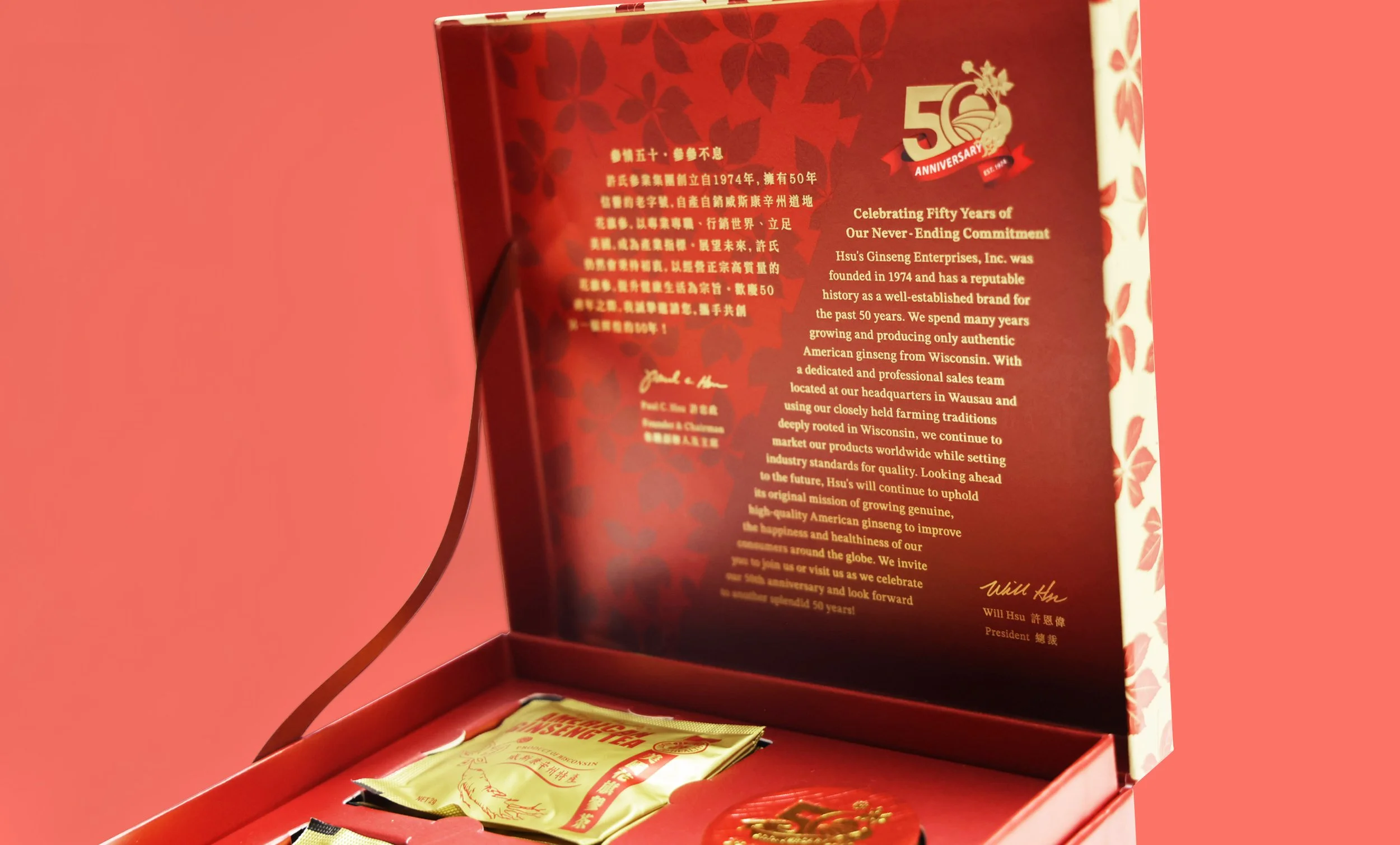 50th Celebration Symbol - The icon design honors Hsu’s 50 years of dedicated ginseng farming in